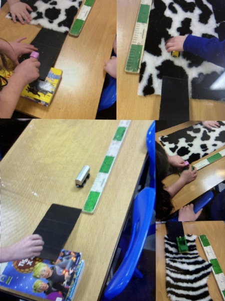 Today, Year 3 carried out a science experiment exploring how friction affects the distance travelled by wheeled vehicles