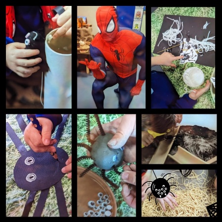 Nursery had a very special surprise visitor this week to end their topic on spiders! They enjoyed learning all about spiders and webs! We had a Spiderman HQ role-play area, made clay spiders, bendy spiders and enjoyed washing the spiders down the drain pipes outside. Thank You Spider-Man ![]()