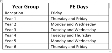 On the days that the children do PE, we ask for the children to come into school in their blue/navy tracksuit with a white PE t shirt.